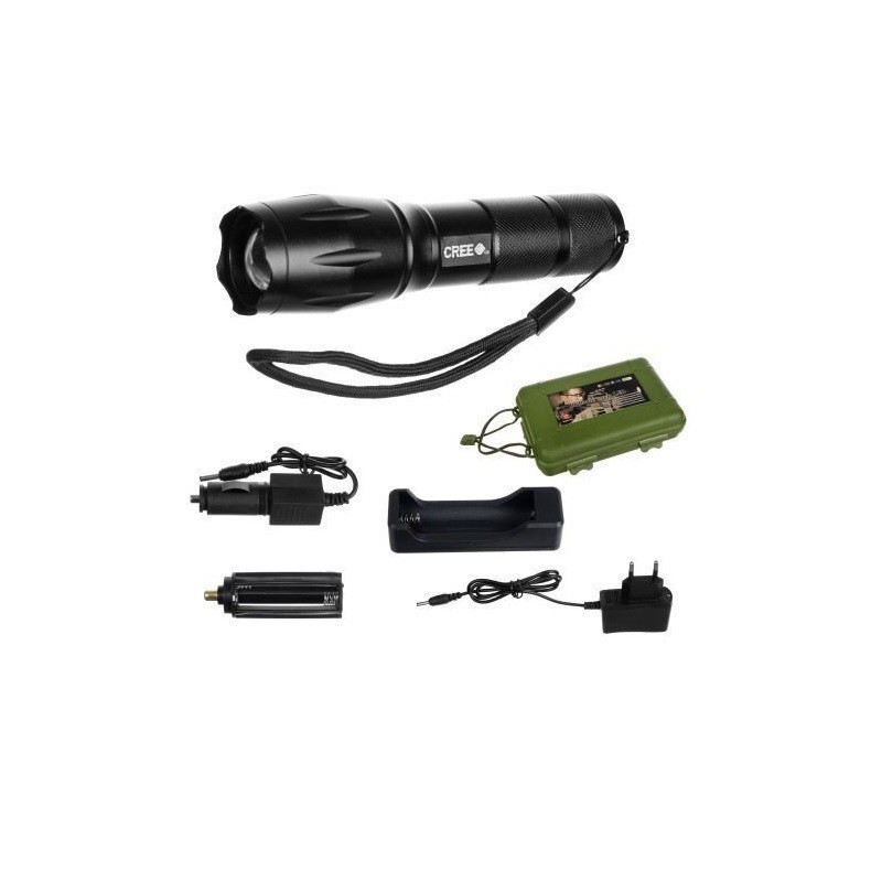 Lanterna tactica LED cu tehnologie Cree XML ofera o iluminare de inalta performanta pentru toate activitatile outdoor. Ideala pentru camping, pescuit, vanatoare sau situatii de urgenta, aceasta lanterna are o luminozitate puternica, autonomie extinsa si rezistenta la apa si socuri. Design robust si usor de utilizat, perfecta pentru a fi utilizata in orice situatie.